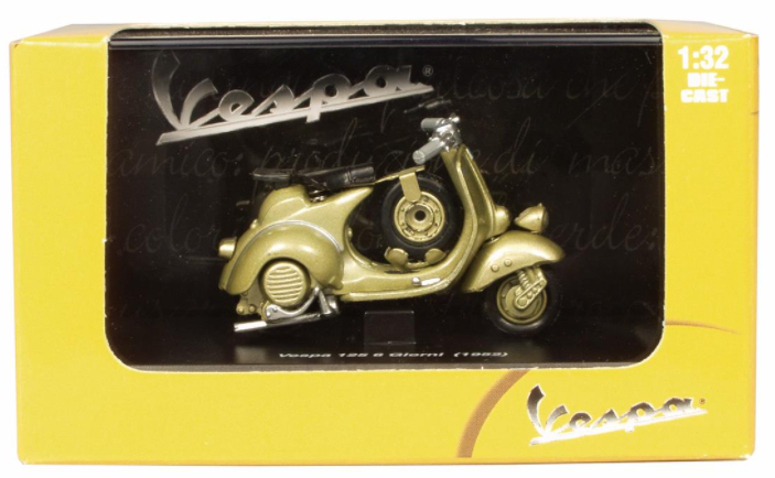 Zeitloses Design, hoher Wiedererkennungswert, diese beiden Eigenschaften der Vespa Motorroller wurden auf äusserst gelungene Weise in dieser Modellserie von NewRay verewigt. Die einzigartigen Miniatur-Zweiräder zeichnen sich durch eine Vespa-typische Steuerung, feine Motordetails und die charakteristisch aufrechte Sitzposition aus. Und das natürlich alles verpackt in einem Karton mit Original-Logo.