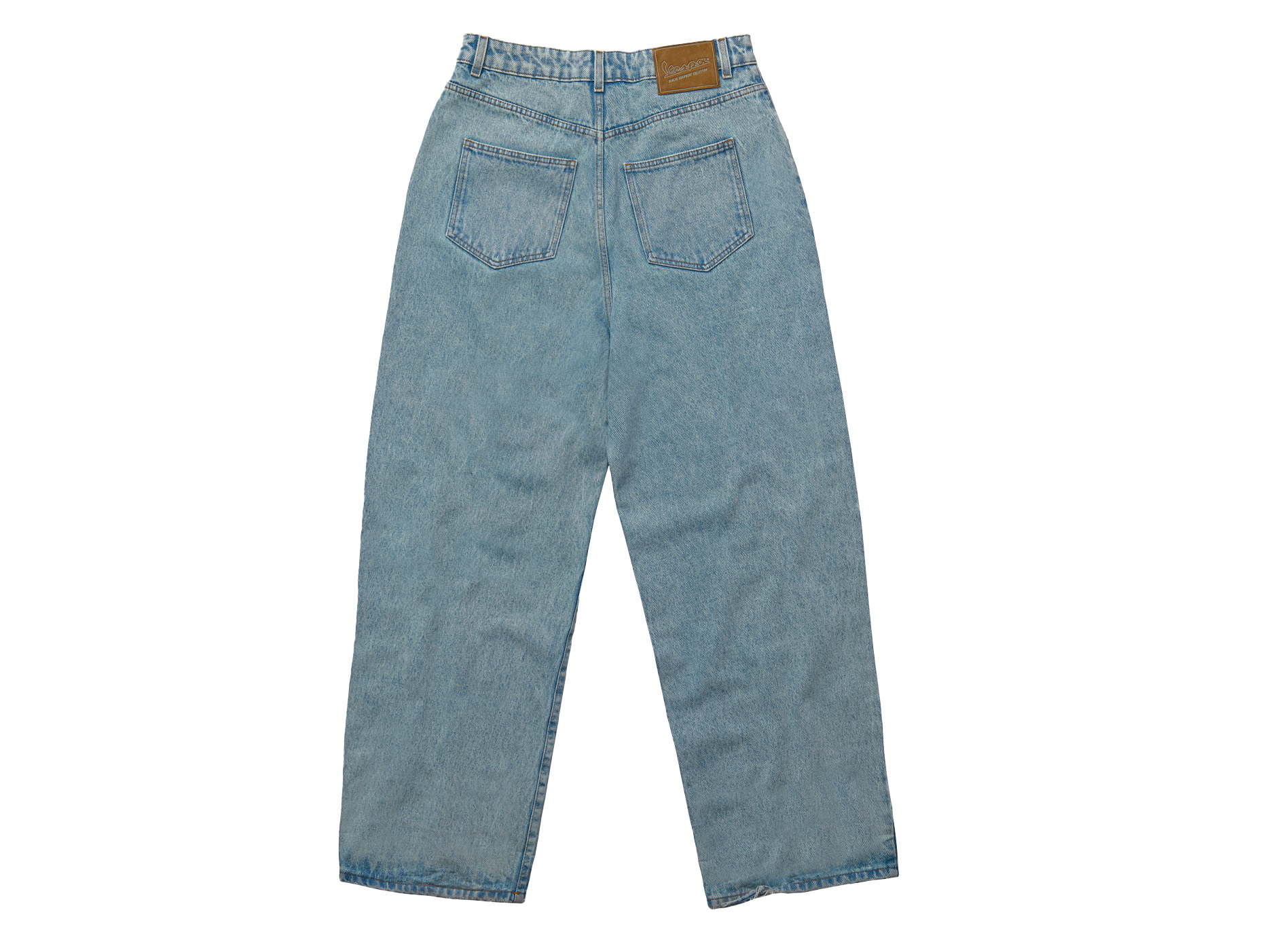 Oversize- und Unisex-Denim, niedrige Taille und weites Bein. Bei Origin und Nomad handelt es sich um Überfärbungen, die dem Kleidungsstück stufenlose Farbübergänge verleihen. Black ist ein Vintage Wash, der für leichte Schattierungen auf dem Kleidungsstück sorgt. Besonders markant ist das geprägte Lederetikett mit kontrastfarbenem Logo auf der Rückseite.