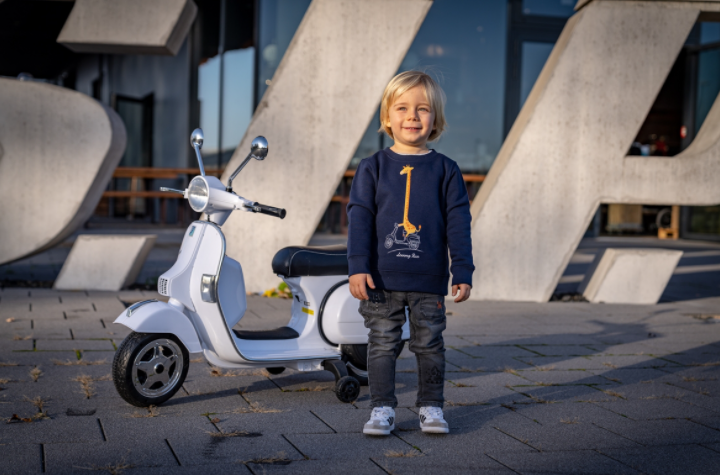 Wie lässt sich die Begeisterung für Motorroller im Allgemeinen und Vespa im Besonderen besser im Outfit ausdrücken als mit diesen liebevoll gezeichneten Kinder Sweatshirts. Die Vespa Motive sind ganz hochwertig und weich gedruckt – fast so, als wären sie "eins mit dem Stoff" Zeig all deinen Freunden, dass dein kleines Kinderherz schon für Vespa schlägt!