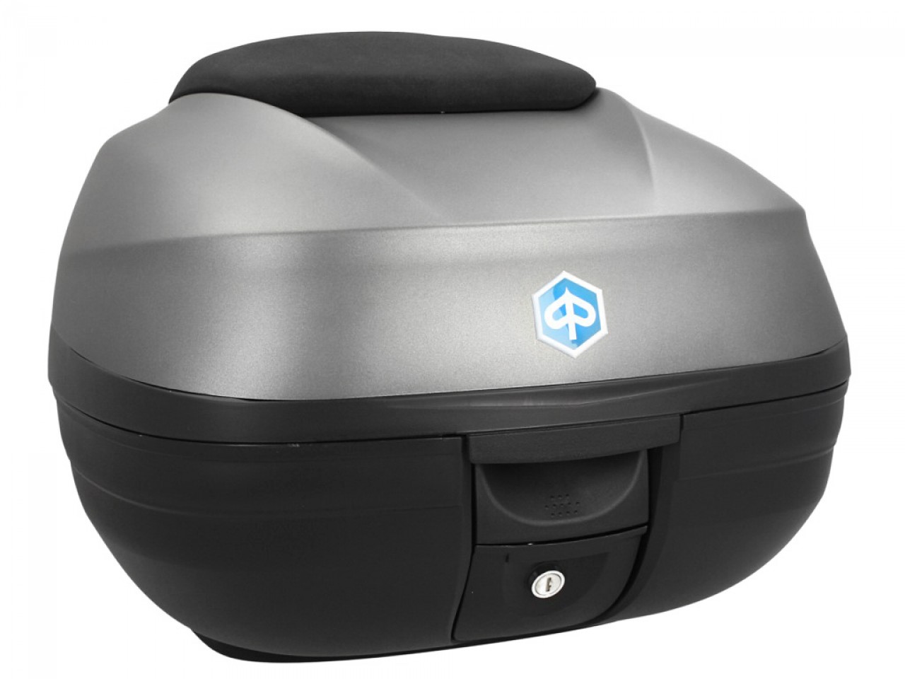 Schnellverschluss-Top-Box. Platz für einen modularen Helm. Oberschale lackiert in der gleichem Farbe wie das Fahrzeug. Komplett mit Komfort