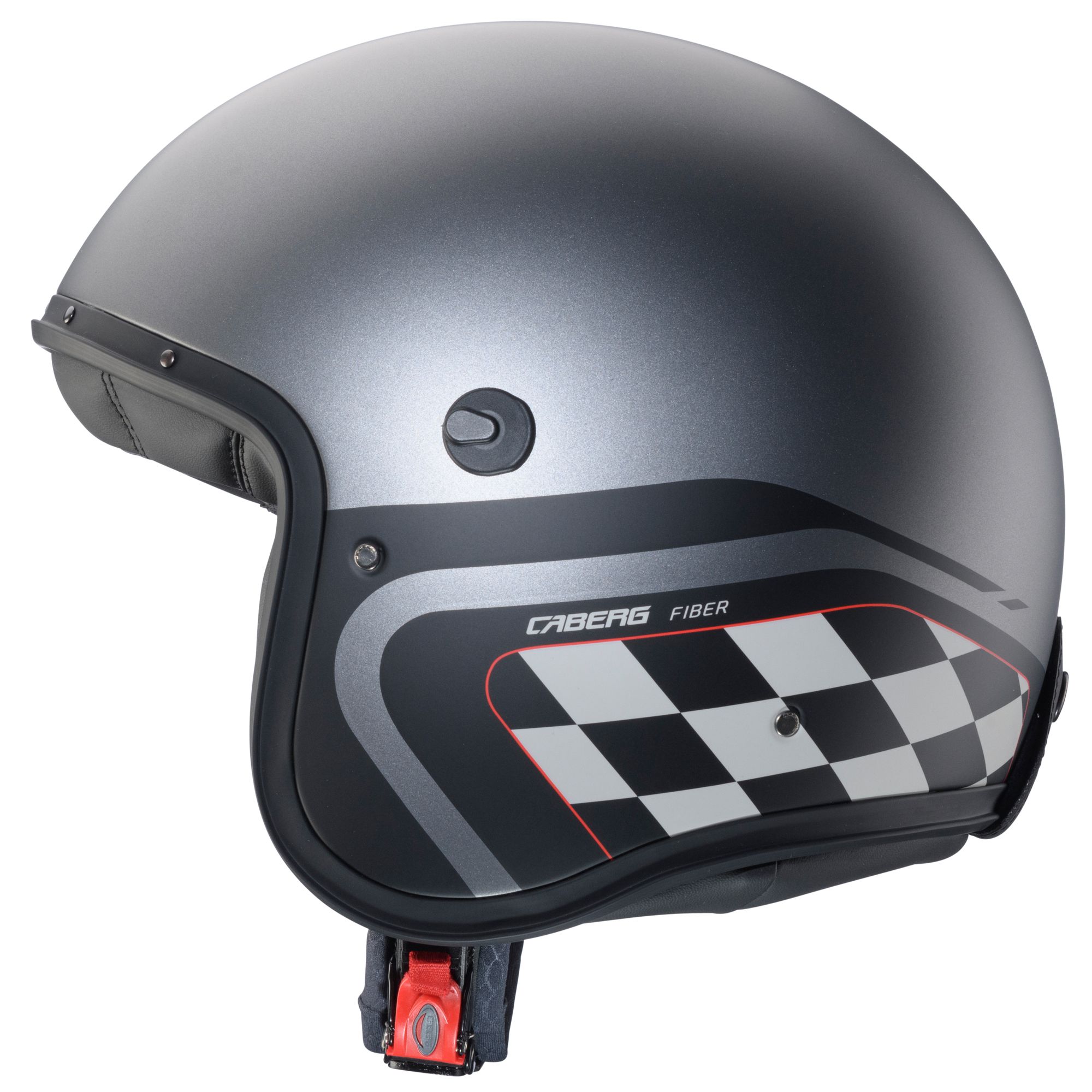 Der Caberg Freeride X Jethelm mit dem Dekor Daytona in den Farben matt-gun metallic/schwarz-weiß verfügt über die folgenden Eigenschaften: