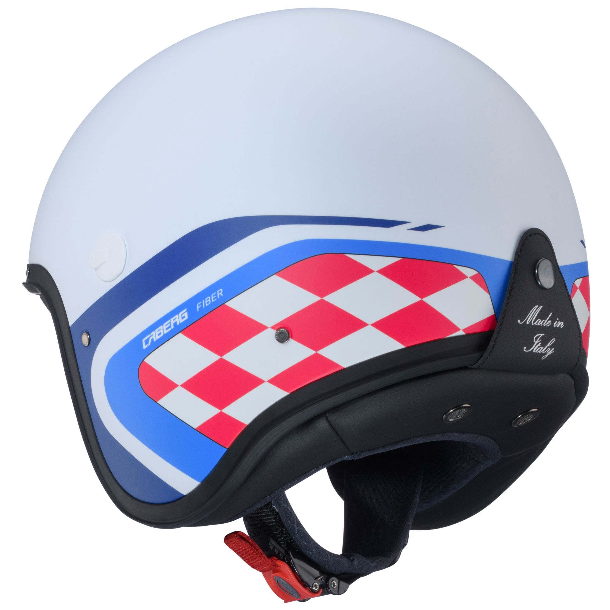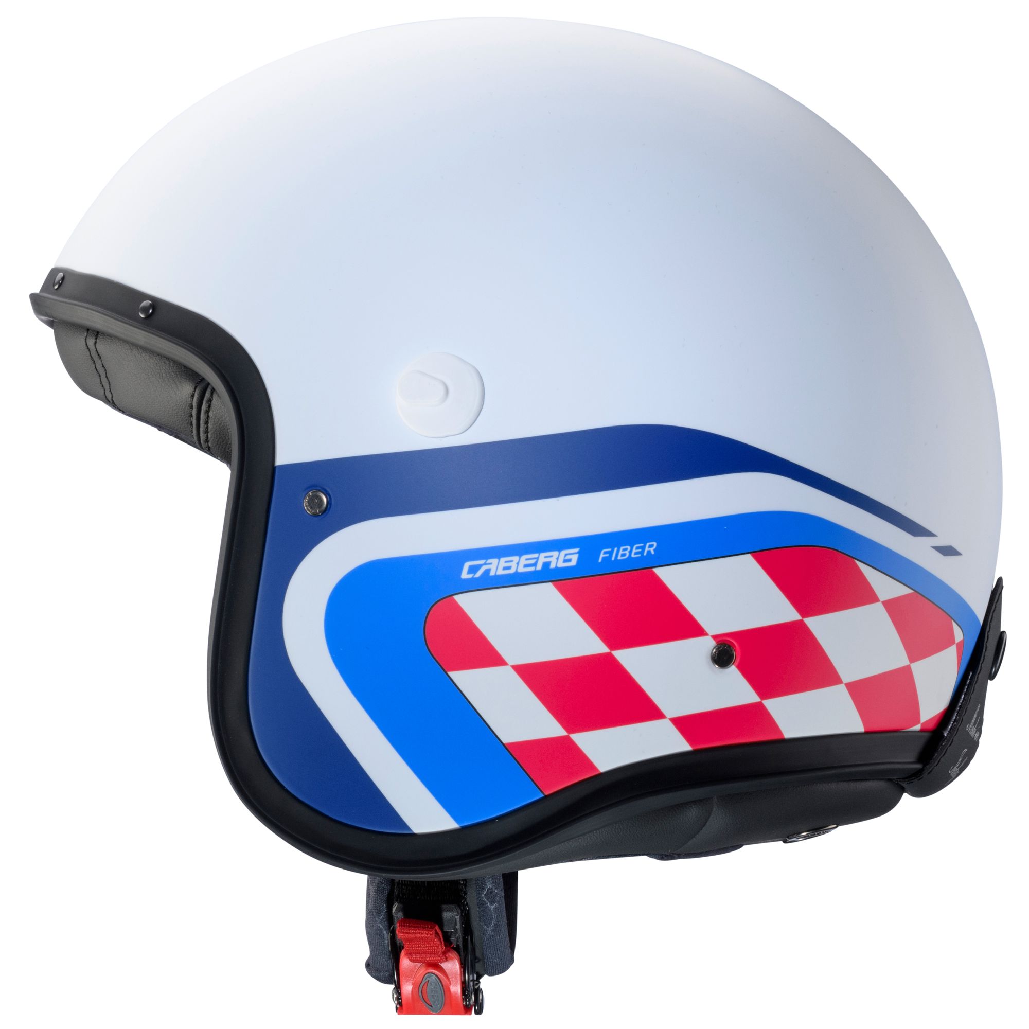 Der Caberg Freeride X Jethelm mit dem Dekor Daytona in den Farben matt-weiß/blau-rot verfügt über die folgenden Eigenschaften: