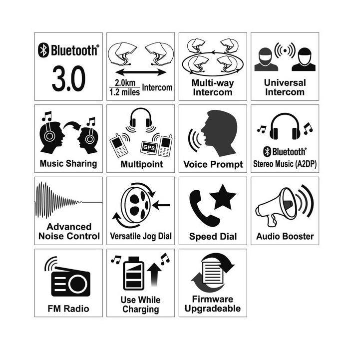 Sie können die Sprachanweisungen ihres Motorrad-Navi (Garmin Zumo/TomTom Rider/Becker Mamba4) hören, ihr Smartphone zum Telefonieren oder Musikhören verbinden.