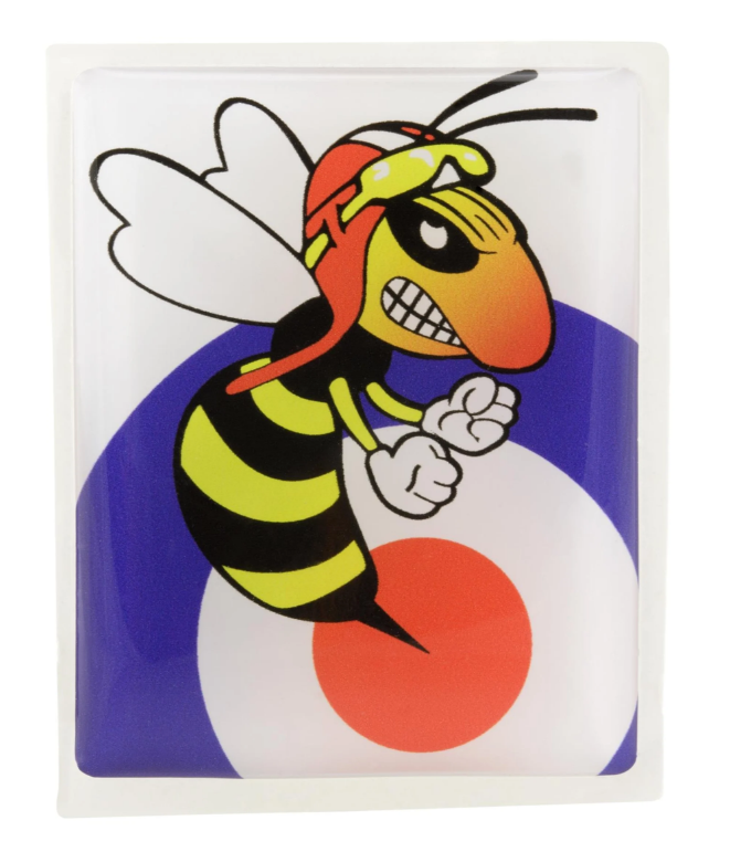 Produktinformationen "Vespa Emblem "Target böse Wespe" 4-Eck Kaskade, blau/weiß/rot"