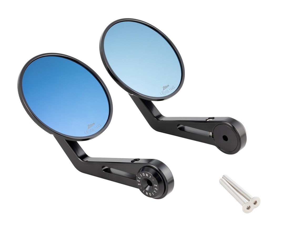 Lenkerendenspiegel Kit von ZELIONI. Das Kit enthält 2 Spiegel inklusive Montagematerial zur Befestigung am Lenkerende.