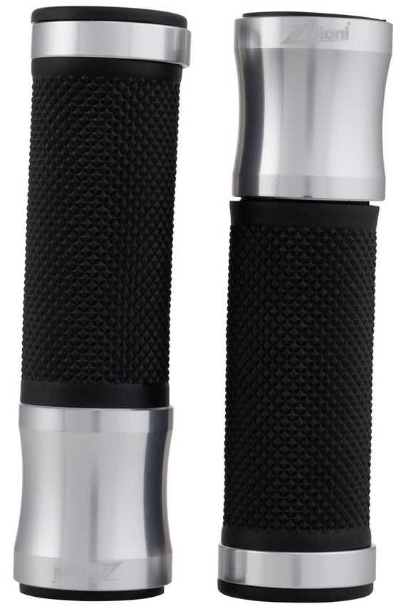 Ergonomischer Griff mit gummierter Handfläche. Alu Caps mit lasergraviertem ZELIONI Logo. Enden offen für Montage von Lenkerendengewichten/Spiegeln.