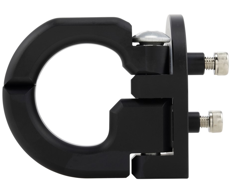 Gepäckhaken aus hochfestem Aluminium, CNC gefräst, schwarz matt, eloxiert, mit ZELIONI Logo. Klappbar, mit Arretierung.