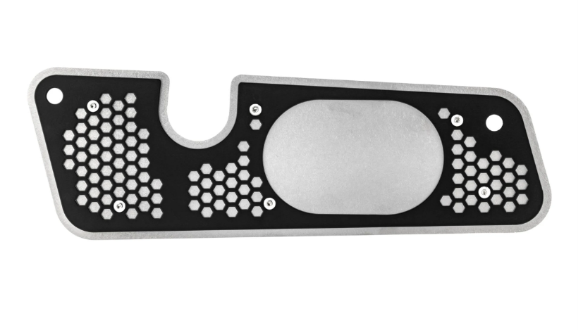 Produktinformationen "Auspuffblende Schwingarm für Vespa GTS/GTS Super/GTV/GT, silber/schwarz"