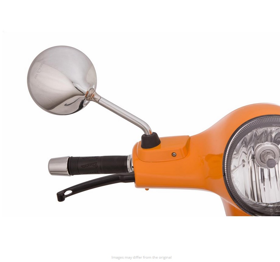 Die Spiegel Shorty sind der Orignalform der Vespa Spiegel gehalten, haben aber einen wesentlich kürzeren Spiegelarm. Mit ca. 5-6cm weniger Hebellänge fügt er sich optimal ins Gesamtbild der Vespa ein. Durch das Kugelgelenk kann der Spiegelkopf angepasst werden, das Sichtfeld wird trotz des kürzeren Hebels nicht beeinträchtigt. Der Spiegel verfügt über eine E-Nummer und darf problemlos im Straßenverkehr gefahren werden. Die Lieferung erfolgt inkl. Gummikappen und Kontermuttern.