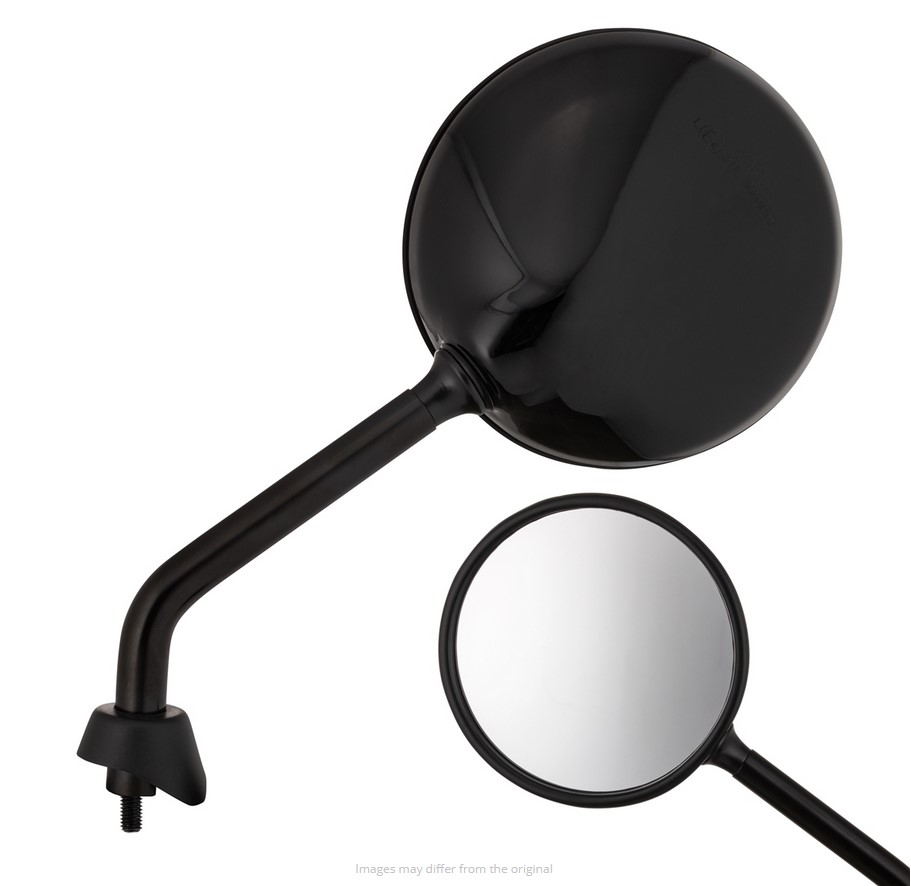 Die Spiegel Shorty sind der Orignalform der Vespa Spiegel gehalten, haben aber einen wesentlich kürzeren Spiegelarm. Mit ca. 5-6cm weniger Hebellänge fügt er sich optimal ins Gesamtbild der Vespa ein. Durch das Kugelgelenk kann der Spiegelkopf angepasst werden, das Sichtfeld wird trotz des kürzeren Hebels nicht beeinträchtigt. Der Spiegel verfügt über eine E-Nummer und darf problemlos im Straßenverkehr gefahren werden. Die Lieferung erfolgt inkl. Gummikappen und Kontermuttern.