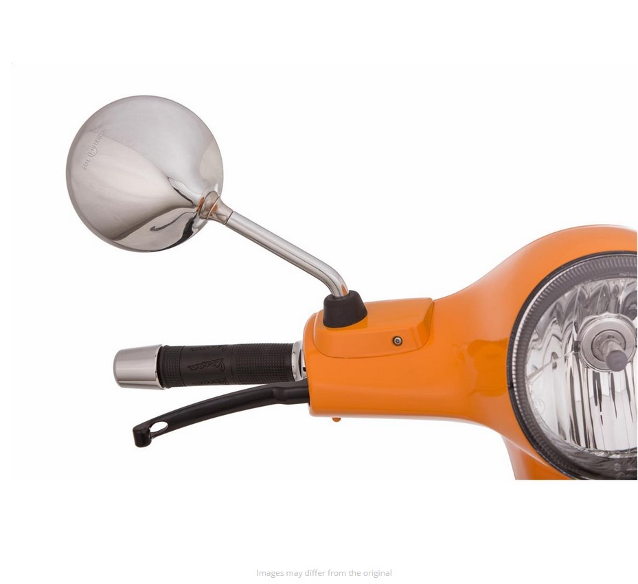 Die Spiegel Shorty sind der Orignalform der Vespa Spiegel gehalten, haben aber einen wesentlich kürzeren Spiegelarm. Mit ca. 5-6cm weniger Hebellänge fügt er sich optimal ins Gesamtbild der Vespa ein. Durch das Kugelgelenk kann der Spiegelkopf angepasst werden, das Sichtfeld wird trotz des kürzeren Hebels nicht beeinträchtigt. Der Spiegel verfügt über eine E-Nummer und darf problemlos im Straßenverkehr gefahren werden. Die Lieferung erfolgt inkl. Gummikappen und Kontermuttern. Zur Montage der Spiegel muss ggf. ein passender Spiegeladapter mitbestellt werden. Vor der Bestellung bitte Gewinde von Spiegel und Adapter prüfen. (M8/M10)