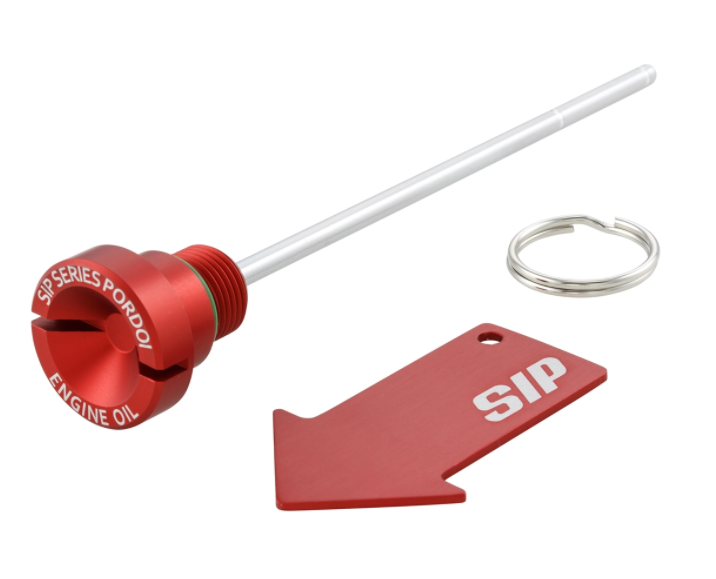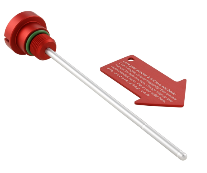 Die Öleinfüllschraube / Messstab SIP PORDOI für das Motoröl wird aus hochwertigem Aluminium CNC gefräst. Durch das schlichte Design sehen die Öleinfüllschrauben an jedem Fahrzeug schön aus und fügen sich gut in das Gesamtbild der Vespa ein. Am Messstab ist die Skala entsprechend der originalen Einfüllschrauben ausgerichtet, der passende Dichtring ist bereits angebracht. Oft werden die serienmäßigen Einfüllschrauben bei parkenden Fahrzeugen entwendet. Um Unbefugten die Arbeit zu erschweren, hat SIP an ein kleines Sicherheitsplus gedacht und liefert ein spezielles Montage-Tool mit den Einfüllschrauben welches praktischer Weise auch als Schlüsselanhänger genutzt werden kann.